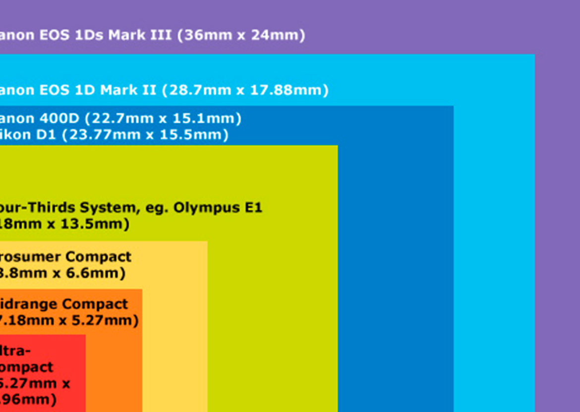 Mais megapixéis e mais qualidade não se encontram em constante relação de grandeza. O que diferencia a qualidade final é o sensor, repare-se na imagem seguinte que ilustra a dimensão dos sensores das diferentes máquinas fotográficas (do menor para o maior): Compactas, DSLR comum e DSLR FullFrame EOS 1Ds Mark III: